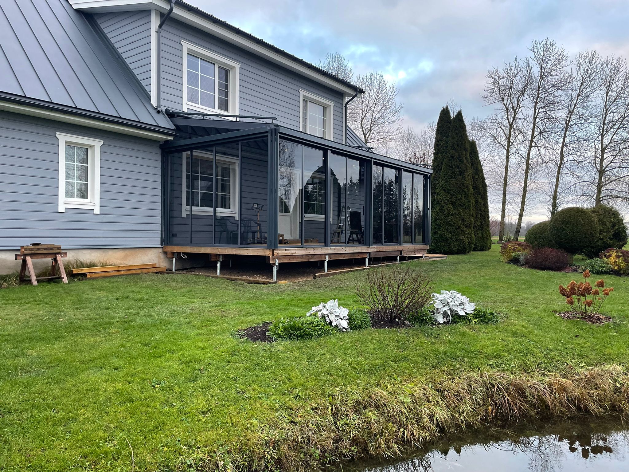 - Built-in drainage system – channels rainwater through support posts